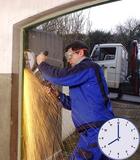 |  | | Ausbau des alten Tores | Montage der neuen Zarge |  |  | Einsetzen der Torblattes